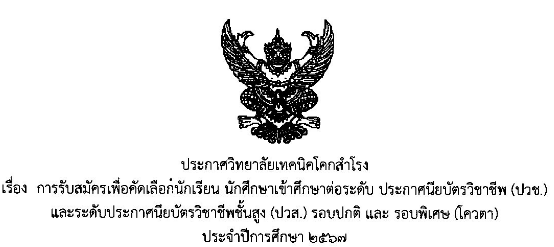 ประกาศวิทยาลัยเทคนิคโคกสำโรง