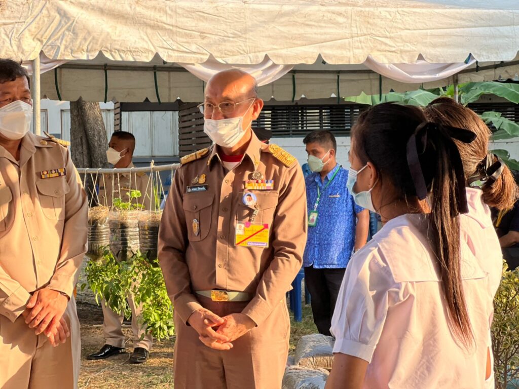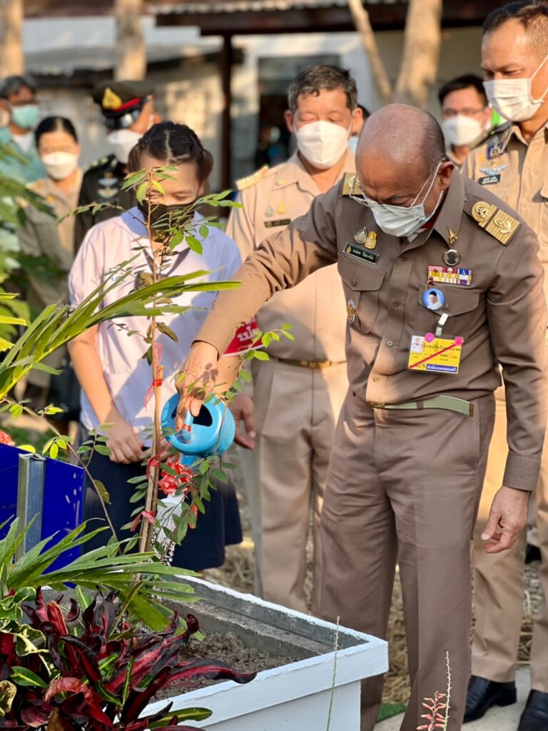 ร่วมต้อนรับ ศาสตราจารย์นายแพทย์เกษม วัฒนชัย องคมนตรีและคณะ ในการตรวจเยี่ยมโรงเรียนโครงการเครือข่ายกองทุนการศึกษา และร่วมปลูกต้นรวงผึ้ง ณ สวนเกษตรโรงเรียนโคกสำโรง