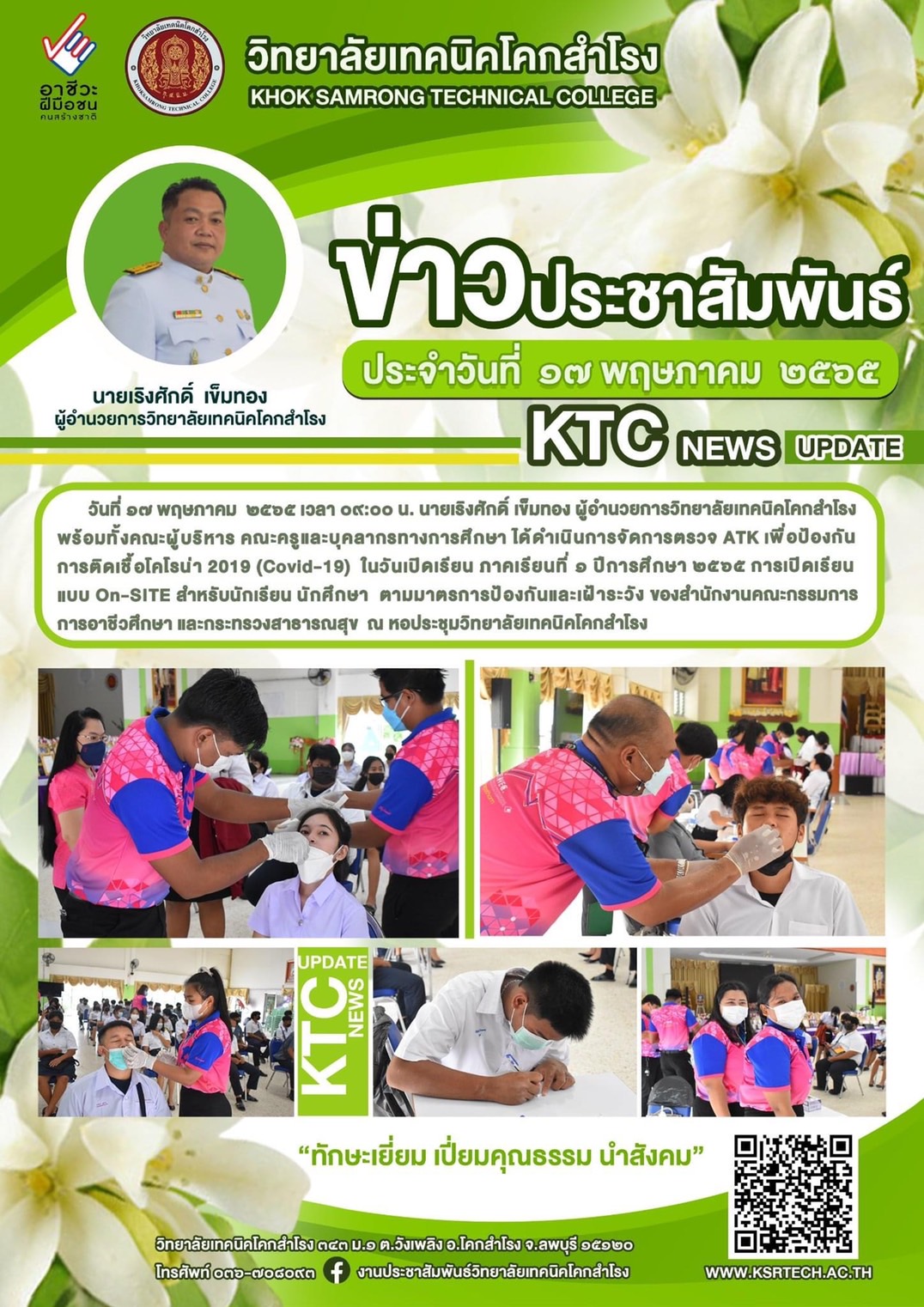 วิทยาลัยเทคนิคโคกสำโรงตรวจ ATK เพื่อป้องกันการแพร่ระบาดโควิด-19 Leave a Comment / ข่าววิทยาลัยฯ / By adminksr จำนวนคนดู: 1