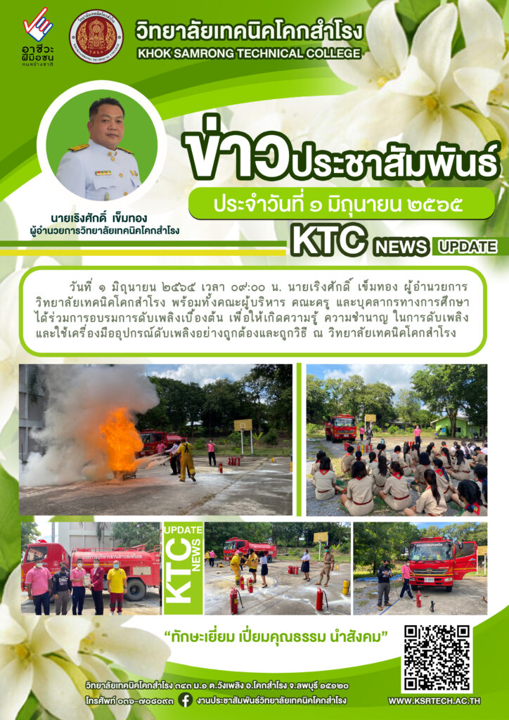 ผู้บริหาร คณะครู บุคลากรทางการศึกษา นักเรียน นักศึกษา ลูกเสือจิตอาสา วิทยาลัยเทคนิคโคกสำโรง ได้ร่วมการอบรมวิธีการดับเพลิงเบื้องต้น ณ วิทยาลัยเทคนิคโคกสำโรง
