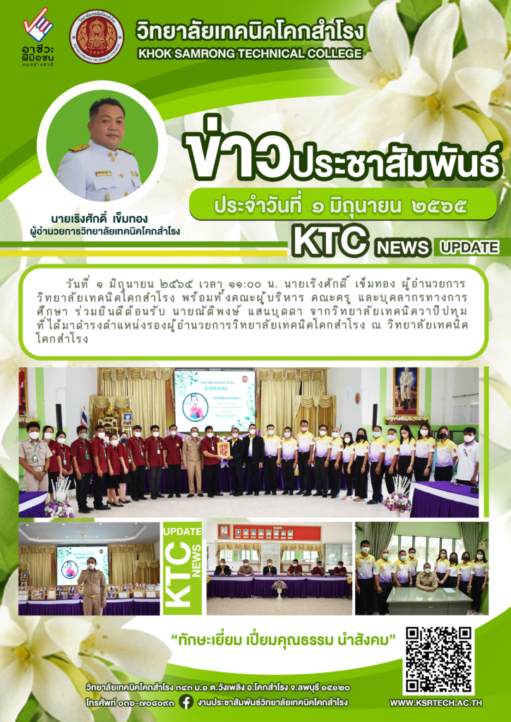 1 มิถุนายน 2565 เวลา 11.00 น. ผู้บริหาร คณะครู และบุคลากรทางการศึกษา วิทยาลัยเทคนิคโคกสำโรง ร่วมต้อนรับ นายณัติพงษ์ แสนบุดดา ที่มาดำรงตำแหน่งรองผู้อำนวยการ วิทยาลัยเทคนิคโคกสำโรง ด้วยความยินดียิ่ง Leave a Comment / ข่าววิทยาลัยฯ / By adminksr จำนวนคนดู: 1