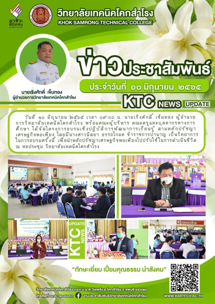 วิทยาลัยเทคนิคโคกสำโรง จัดโครงการอบรมเชิงปฏิบัติการพัฒนาการเรียนรู้ ตามหลักเศรษฐกิจพอเพียง โดยได้รับเกียรติจากข้าราชการบำนาญ นางสาวนิตยา อรรถโกมล เป็นวิทยากร ณ หอประชุมวิทยาลัยเทคนิคโคกสำโรง