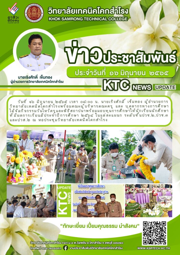 วิทยาลัยเทคนิคโคกสำโรง จัดกิจกรรมวันไหว้ครูและพิธีไหว้ครูช่าง ประจำปีการศึกษา 2565 พร้อมมอบทุนการศึกษา ให้แก่นักเรียน นักศึกษา Leave a Comment / ข่าววิทยาลัยฯ / By adminksr จำนวนคนดู: 4