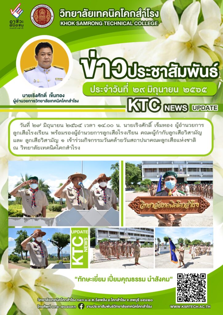 นายเริงศักดิ์ เข็มทอง ผู้อำนวยการลูกเสือโรงเรียน พร้อมรองผู้อำนวยการลูกเสือโรงเรียน คณะผู้กำกับลูกเสือวิสามัญ และลูกเสือวิสามัญ 1 เข้าร่วมกิจกรรมวันคล้ายวันสถาปนาคณะลูกเสือแห่งชาติ ณ วิทยาลัยเทคนิคโคกสำโรง