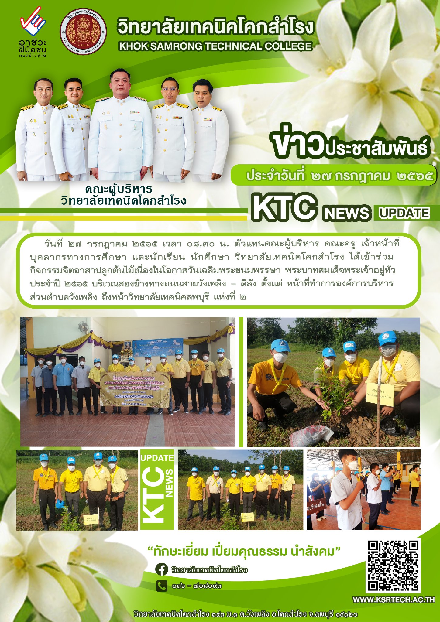วิทยาลัยเทคนิคโคกสำโรง จัดกิจกรรมจิตอาสาปลูกต้นไม้เนิ่งในโอกาสวันเฉลิมพระชนมพรรษา พระบาทสมเด็จพระเจ้าอยู่หัว ประจำปี 2565 / ข่าววิทยาลัยฯ / By adminksr จำนวนคนดู: 2