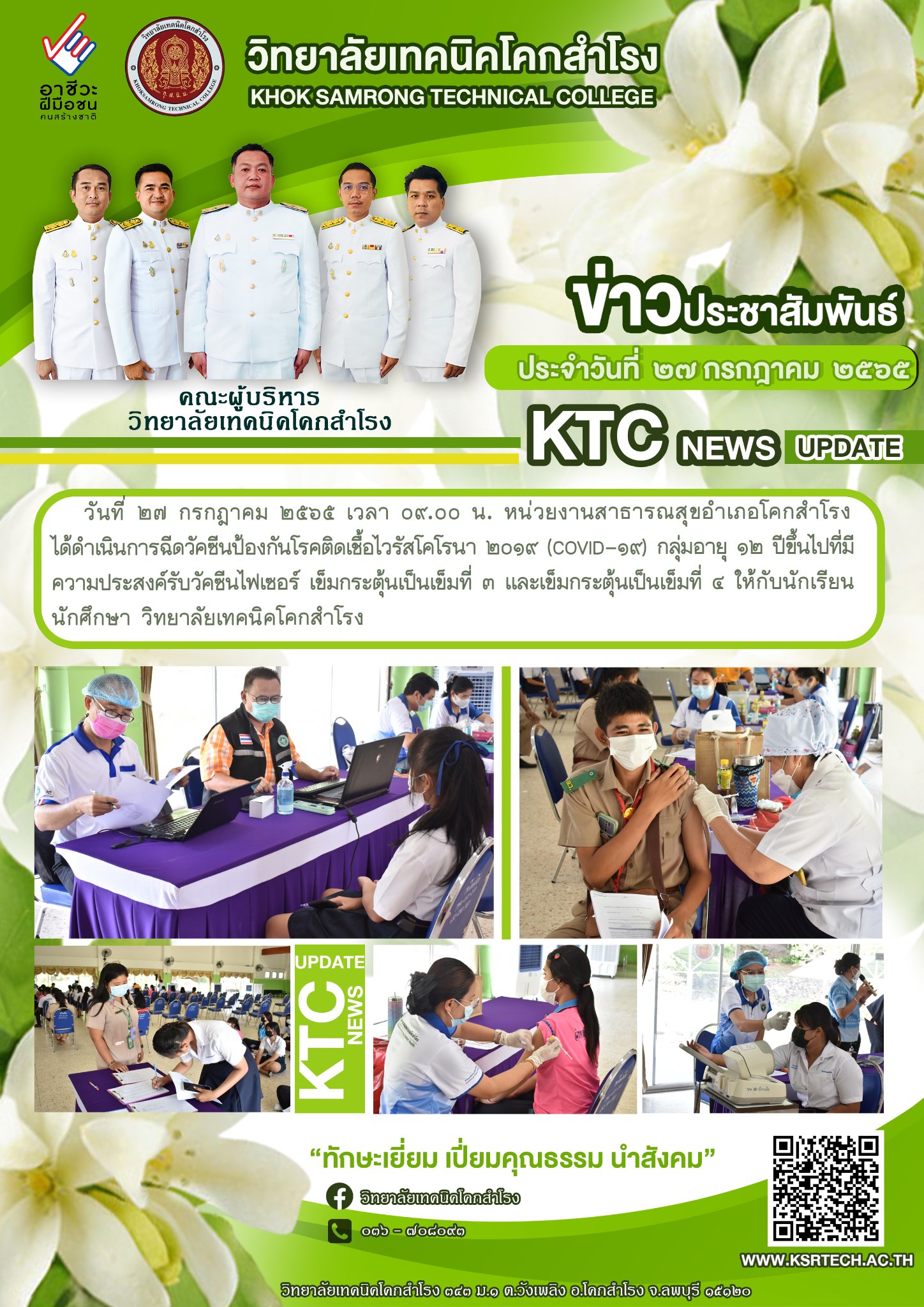 หน่วยงานสาธารณสุขโคกสำโรง ได้ดำเนินการฉีดวัคซีนป้องกันโรคติดเชื่อโคโรน่า 2019 กระตุ้นเข็ม 3-4 ณ วิทยาลัยเทคนิคโคกสำโรง / ข่าววิทยาลัยฯ / By adminksr จำนวนคนดู: 3