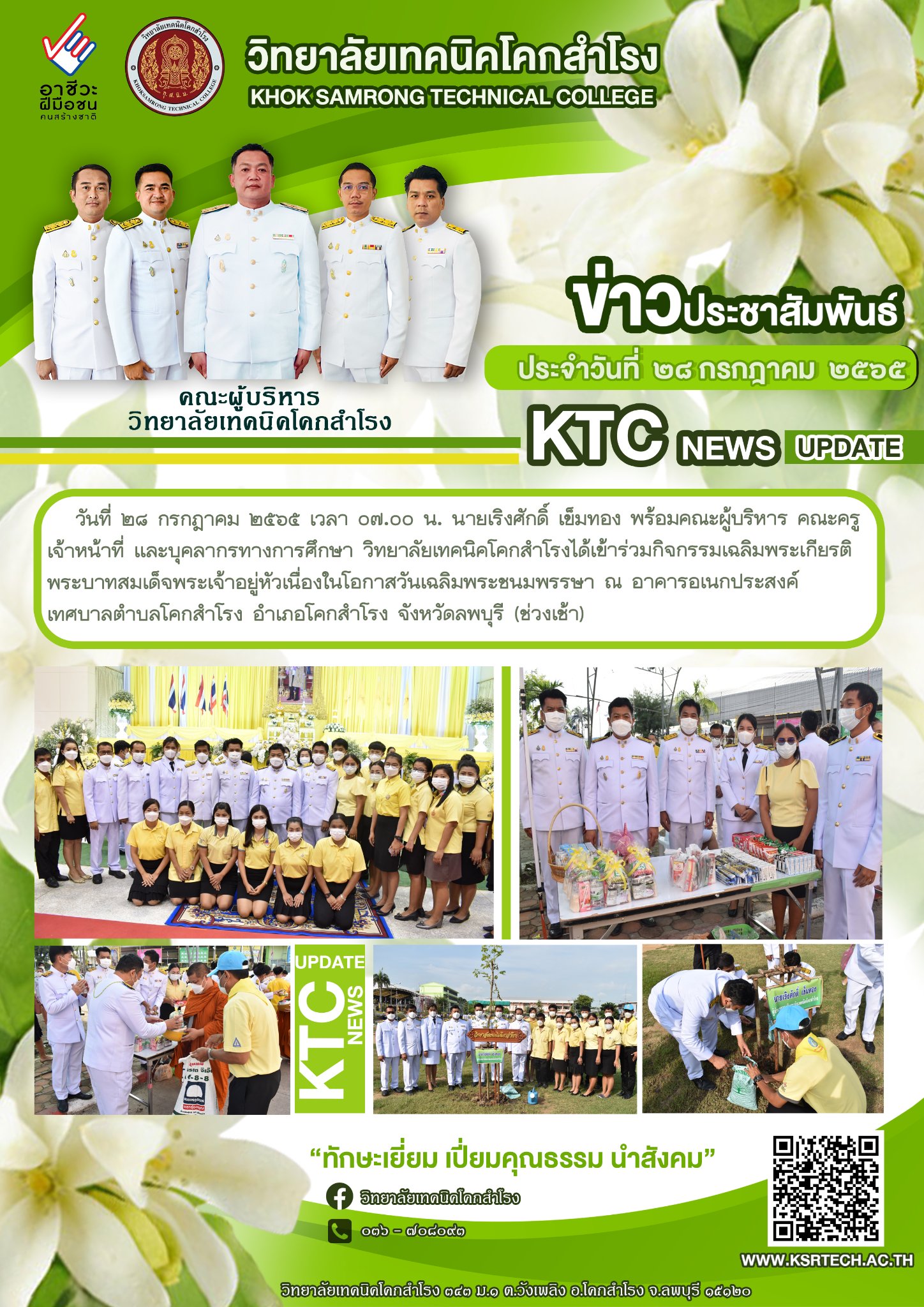 วิทยาลัยเทคนิคโคกสำโรงร่วมกิจกรรมเฉลิมพระเกียรติ พระบาทสมเด็จพระเจ้าอยู่หัวเนื่องในวโรกาสเฉลิมพระชนมพรรษา / ข่าววิทยาลัยฯ / By adminksr จำนวนคนดู: 4