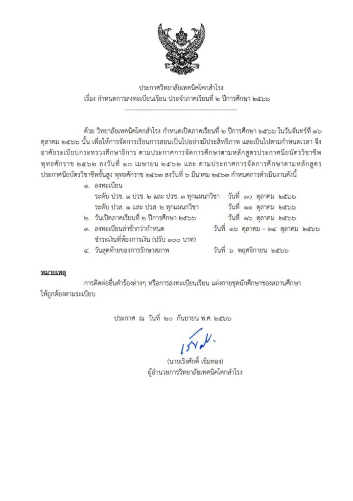 ประกาศ เรื่อง กำหนดการลงทะเบียนเรียน ประจำภาคเรียนที่ 2 ปีการศึกษา 2566 / ข่าววิทยาลัยฯ, ประกาศ:งานทะเบียน / By adminksr จำนวนคนดู: 17