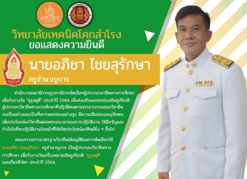 ขอแสดงความยินดี นายอภิชา ไชยสุรักษา ครูชำนาญการ ได้รับรางวัล “คุรุสดุดี” ประจำปี 2564 Read More »