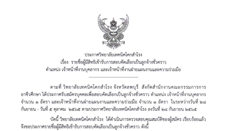 ประกาศเรื่อง รับสมัครบุคคลเพื่อสอบคัดเลือกเป็นลูกจ้างชั่วคราว ข่าววิทยาลัยฯ, รับสมัครงาน / adminksr ประกาศเรื่อง รับสมัครบุคคลเพื่อสอบคัดเลือกเป็นลูกจ้างชั่วคราว Read More »